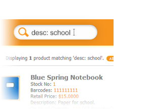 Find your products faster, by searching for name, stock number, barcode, or description.